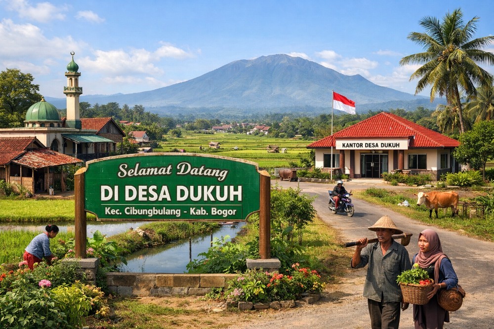 Desa Dukuh di Kecamatan Cibungbulang, Kabupaten Bogor, merupakan desa yang tumbuh dari akar agraris dengan sejarah panjang sebagai wilayah pertanian dan komunitas religius yang kuat. Sejak dulu hingga sekarang, kehidupan warganya didominasi oleh aktivitas bertani, berkebun, dan peternakan skala kecil, yang kemudian berkembang dengan hadirnya UMKM seperti warung dan usaha rumah tangga sebagai penopang ekonomi. Seiring perubahan zaman dan meningkatnya pembangunan di wilayah Cibungbulang, sebagian lahan mulai beralih fungsi, mendorong warga untuk beradaptasi melalui diversifikasi usaha, pemberdayaan ekonomi desa, serta peningkatan kapasitas masyarakat lewat pendidikan, kegiatan keagamaan, dan program pendampingan. Saat ini, fokus warga Desa Dukuh berada pada menjaga keseimbangan antara identitas desa yang agraris dan kebutuhan untuk berkembang secara ekonomi di tengah arus modernisasi.